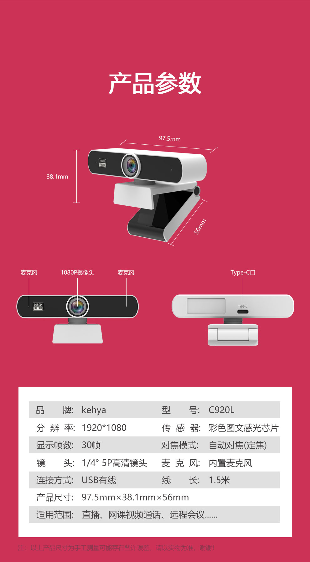 【科雅 C920L】科雅(KEHYA)C920LHD防犯カメラ电脑台式机笔记本1080P自动对焦 网课教学考试直播视频通话 USB内置麦克风【行情 报价 价格 评测】-