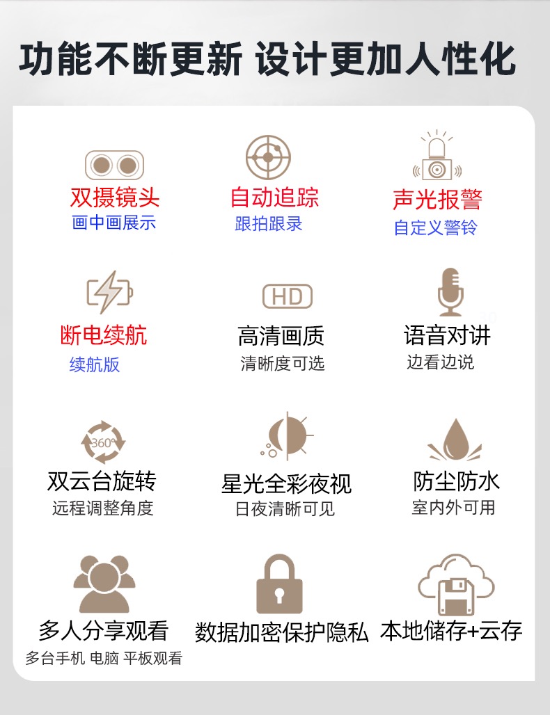 | 商品名称 | KSNCAMHD監視防犯カメラ室外防水ワイヤレスwifiインターネットモニター家用スマホリモートで360°パノラマ球机防犯カメラ 【升级款+断电续航】送64GB |
