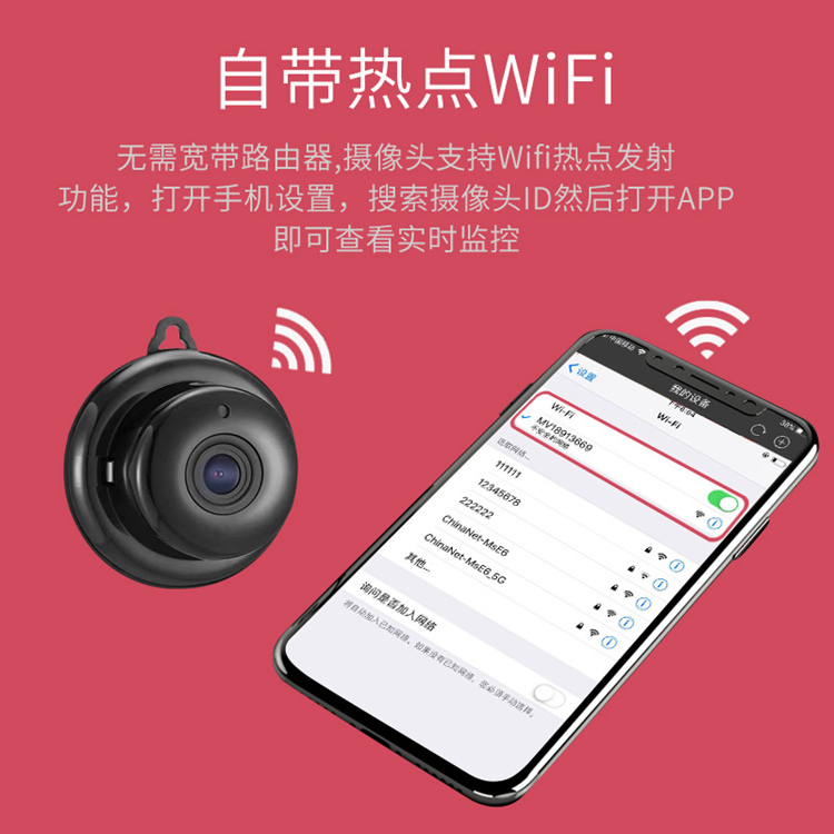 凌上 微型摄头 ワイヤレス 監視防犯カメラwifi超HD家用小型インターネットビデオカメラ迷你モニタースマホリモートでHD夜視家用录像机 64G内存+HD版+电源直供+带夜視+语音对讲 官方标一致