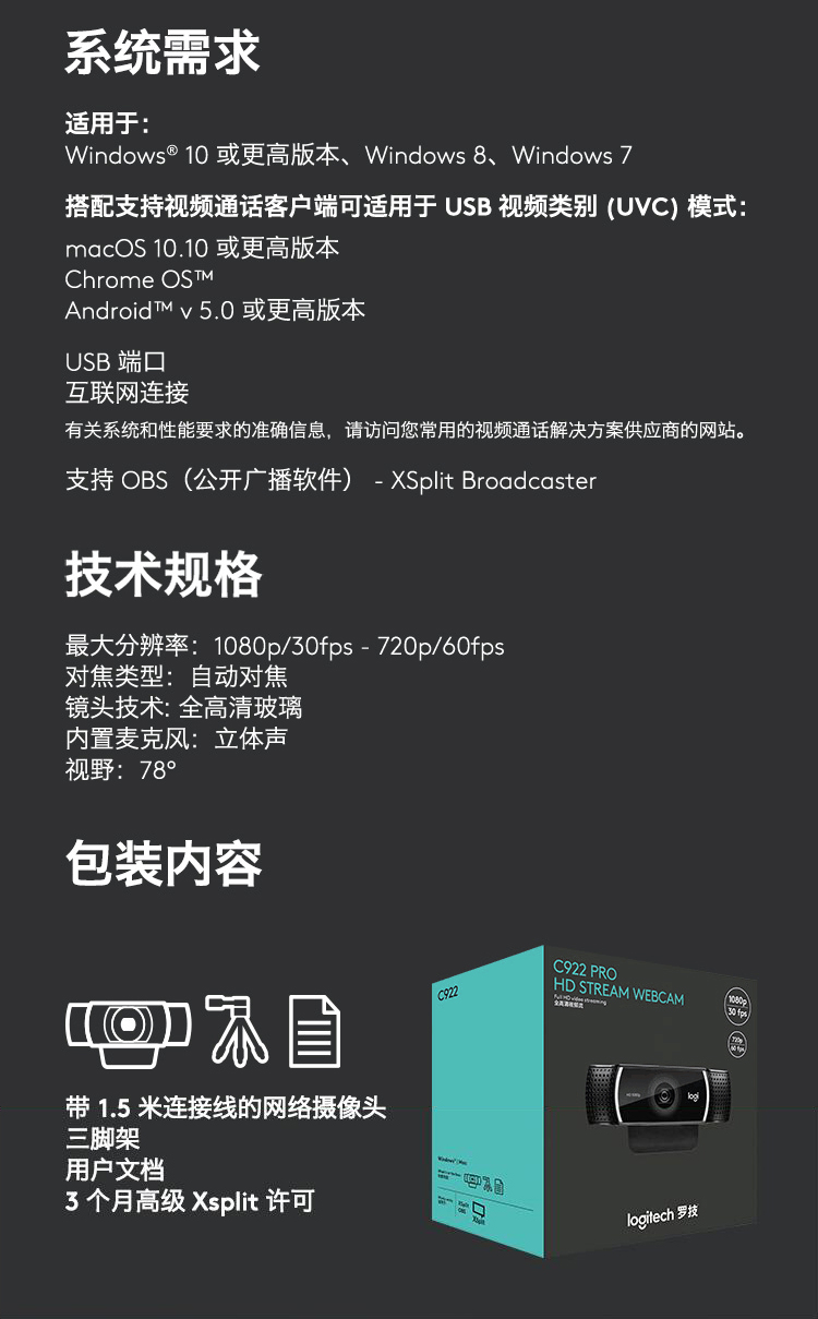 【罗技(Logitech)C922】罗技(Logitech) C922HDインターネット防犯カメラ 美颜主播网红直播防犯カメラ 电脑视频会议网课教学防犯カメラ 黑【行情 报价 价格 评测】-
