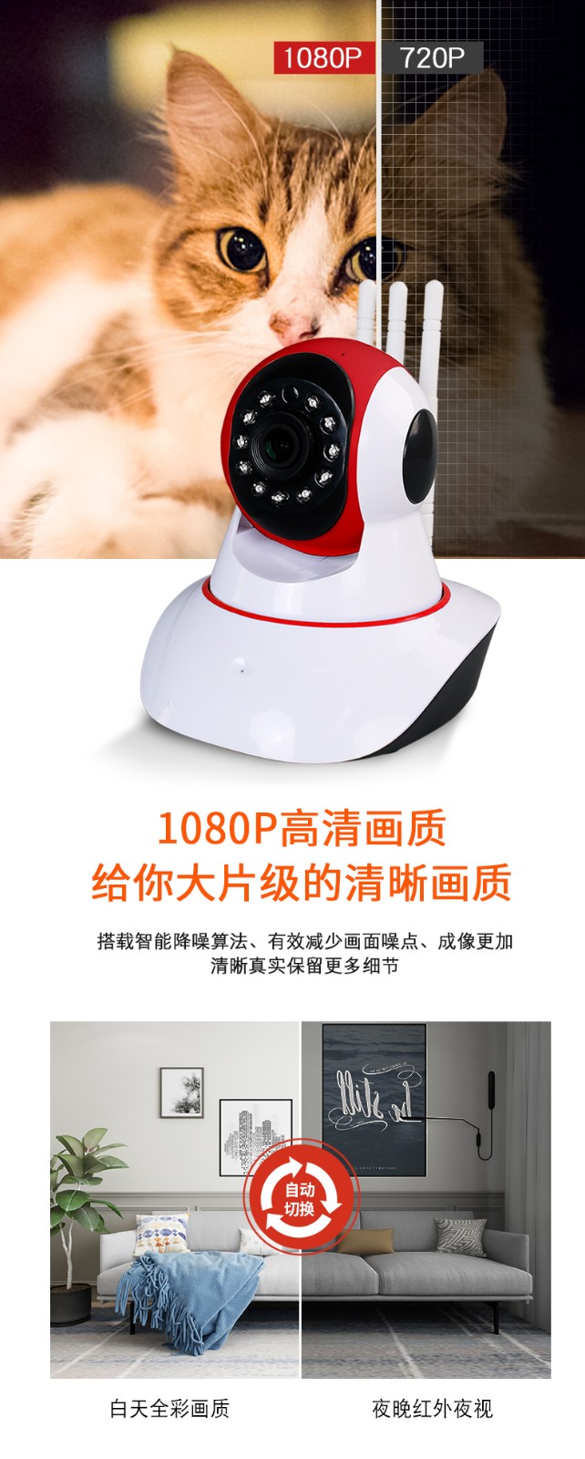 トップ 鹊起防犯カメラ 雅诺仕 ワイヤレス360°パノラマインテリジェント防犯カメラスマホwifiインターネットリモートで室外室内家用HD夜視フルカラーモニター语音对讲防盗防水 5MP皎月白【三天线+赤外線夜視+インテリジェント雲台】 无内存