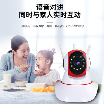 雅诺仕 ワイヤレス360°パノラマインテリジェント防犯カメラスマホwifiインターネットリモートで室外室内家用HD夜視フルカラーモニター语音对讲防盗防水 5MP高贵红【三天线+昼夜フルカラー+インテリジェント雲台】 256Gメモリカード