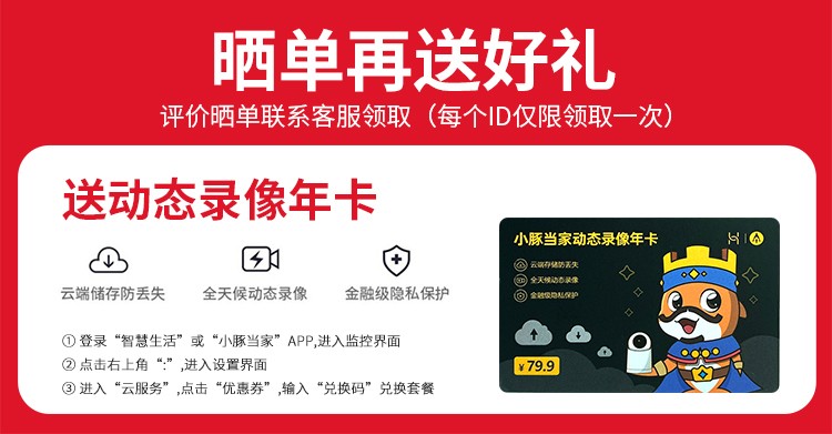 华为智选小豚監視防犯カメラ家庭モニター家用商用360°パノラマインテリジェントビデオカメラワイヤレスWiFiスマホリモートで2K超HD夜視防犯 標準版【读卡器+上墙贴+五年换新】