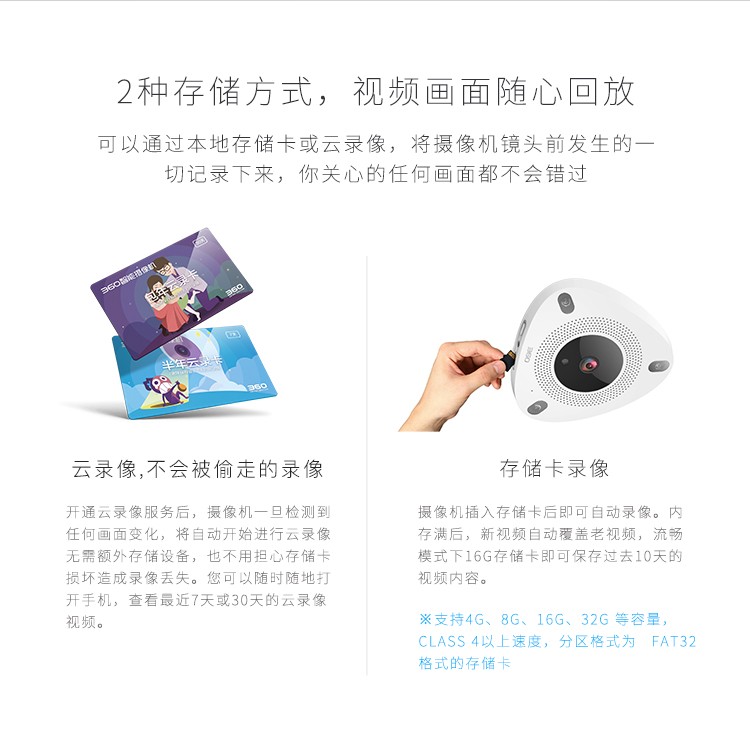 360 監視防犯カメラ看店宝 家用ワイヤレスWiFiカード防犯カメラ スマホリモートでHD夜視インテリジェントインターネットビデオカメラ 看店宝二代1080P+32Gメモリカード