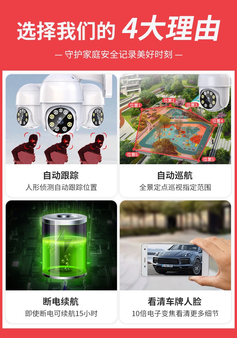 | 商品名称 | 索瑞特 HD監視防犯カメラ室内外防水モニター家用ビデオカメラ360°パノラマアウトドア4gスピンワイヤレス球机インターネットwifiスマホリモートで 360°wifi版+人形追踪+昼夜フルカラー 256Gメモリカード |