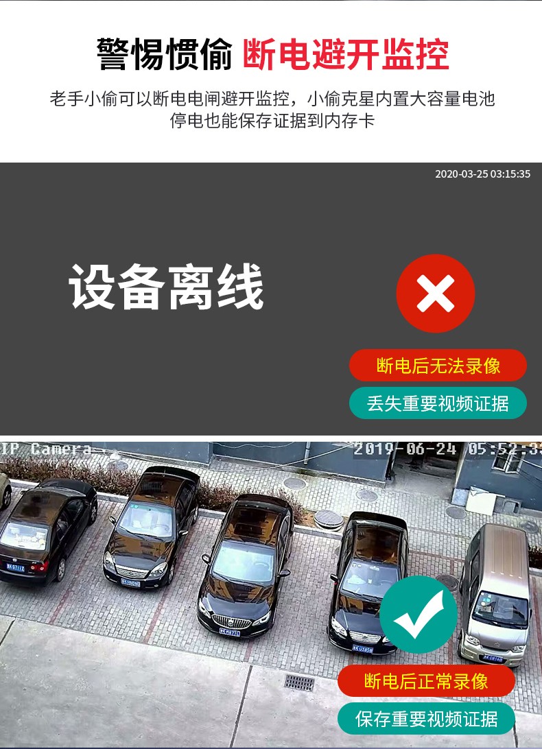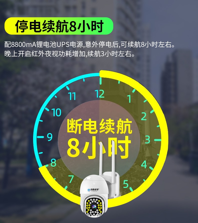 夜鹰威视 HD監視防犯カメラ室外防水ワイヤレスwifiインターネットモニター家用スマホリモートで360°パノラマ監視スピン4gアウトドア球机 【断电续航wifi版】停电也可監視 16mm