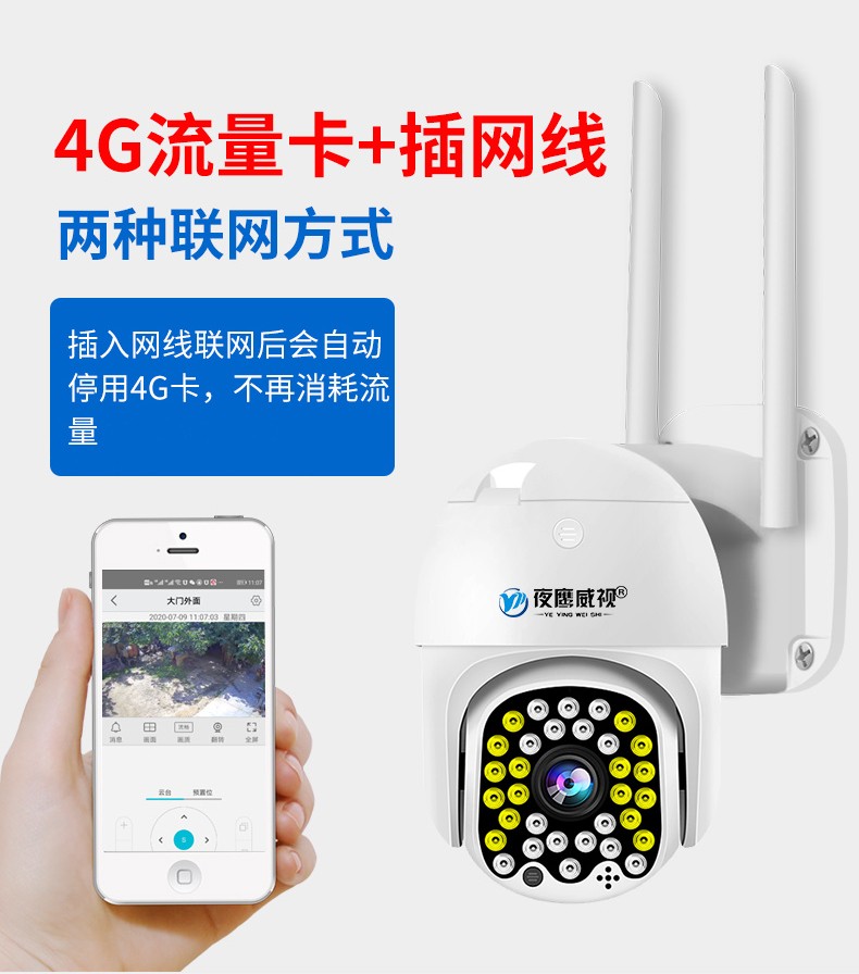 トップ 鹊起防犯カメラ 夜鹰威视 HD監視防犯カメラ室外防水ワイヤレスwifiインターネットモニター家用スマホリモートで360°パノラマ監視スピン4gアウトドア球机 【断电续航wifi版】停电也可監視 16mm