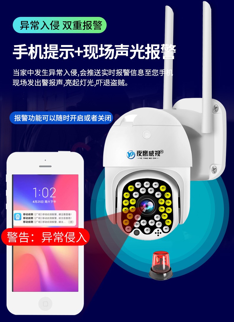 夜鹰威视 HD監視防犯カメラ室外防水ワイヤレスwifiインターネットモニター家用スマホリモートで360°パノラマ監視スピン4gアウトドア球机 【断电续航wifi版】停电也可監視 4mm