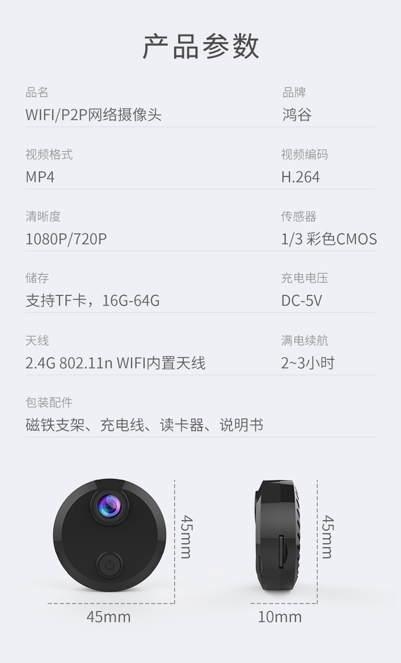 | 商品名称 | 鸿谷 ワイヤレス微型監視防犯カメラHD迷你摄影头 家用摄影机インターネットリモートで视频录像机充电池モニター 微小型室内ビデオカメラ 超小超薄+スーパークリア1080P夜視版+16Gメモリカード |