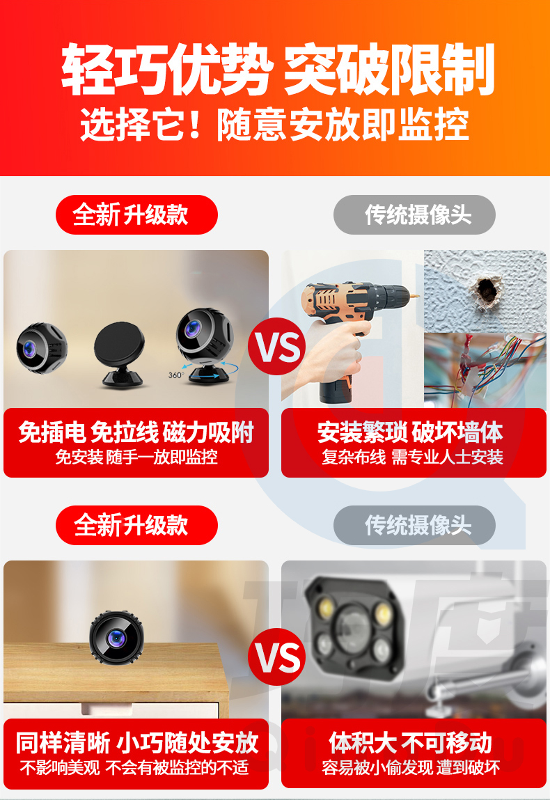 巧°監視防犯カメラ迷你超小微型摄头wifiワイヤレス袖珍4gインターネット接続接スマホ摄影头1080PHDモニター家用免插电 1080PHD防犯カメラ含64G卡 黒【图片 价格 品牌 报价】-
