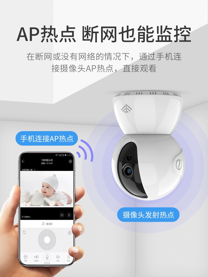 雅诺仕 ワイヤレスインターネットインテリジェント防犯カメラスマホ360°パノラマリモートでwifi家用インターネット室外HD夜視モニター双向语音对讲防盗回放 360°パノラマ+インテリジェント雲台+终