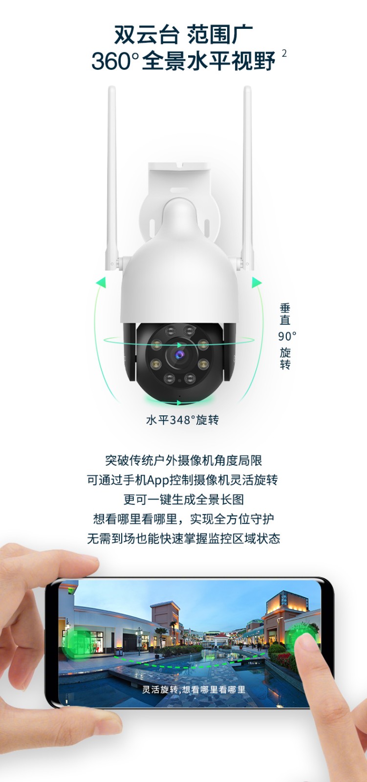 360 防犯カメラアウトドア雲台球机5C 室外防水300WHD2Kフルカラー夜視家用WiFiモニタースマホワイヤレスインターネットビデオカメラ アウトドア雲台球机【128G卡+六米延长线+读卡器】
