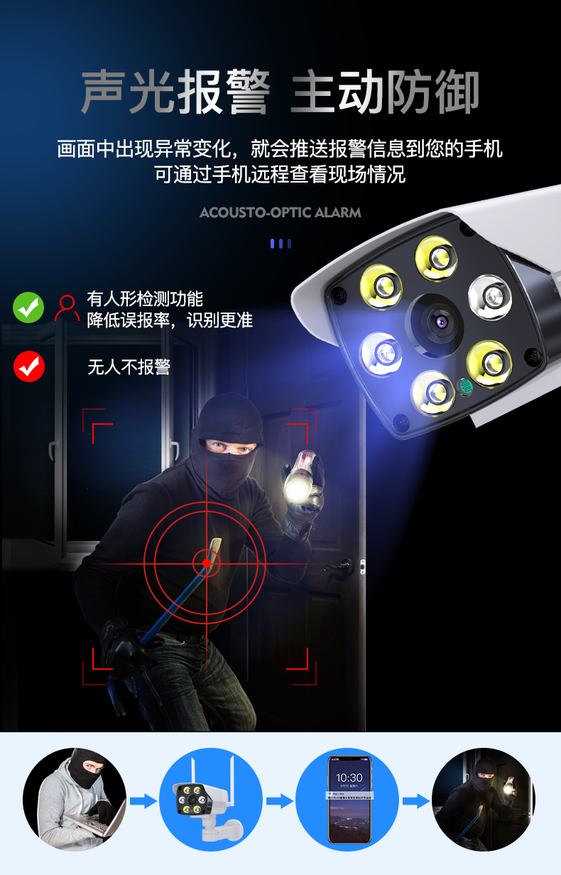 索瑞特 ワイヤレスインターネット防犯カメラ连スマホ360°パノラマリモートでwifi家用インターネット室外HD夜視モニターインテリジェント语音对讲防水防尘 雲台スピン+WiFi昼夜フルカラー+5MPHD+终身质保 32G内存