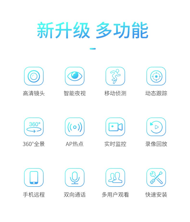 雅诺仕 ワイヤレスインターネットインテリジェント防犯カメラスマホ360°パノラマリモートでwifi家用インターネット室外HD夜視モニター双向语音对讲防盗回放 360°パノラマ+インテリジェント雲台+终身质保 128gメモリカード