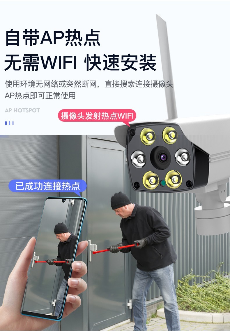 索瑞特 ワイヤレスインターネット防犯カメラ连スマホ360°パノラマリモートでwifi家用インターネット室外HD夜視モニターインテリジェント语音对讲防水防尘 WiFi昼夜フルカラー+5MPHD+终身质保 64G内存
