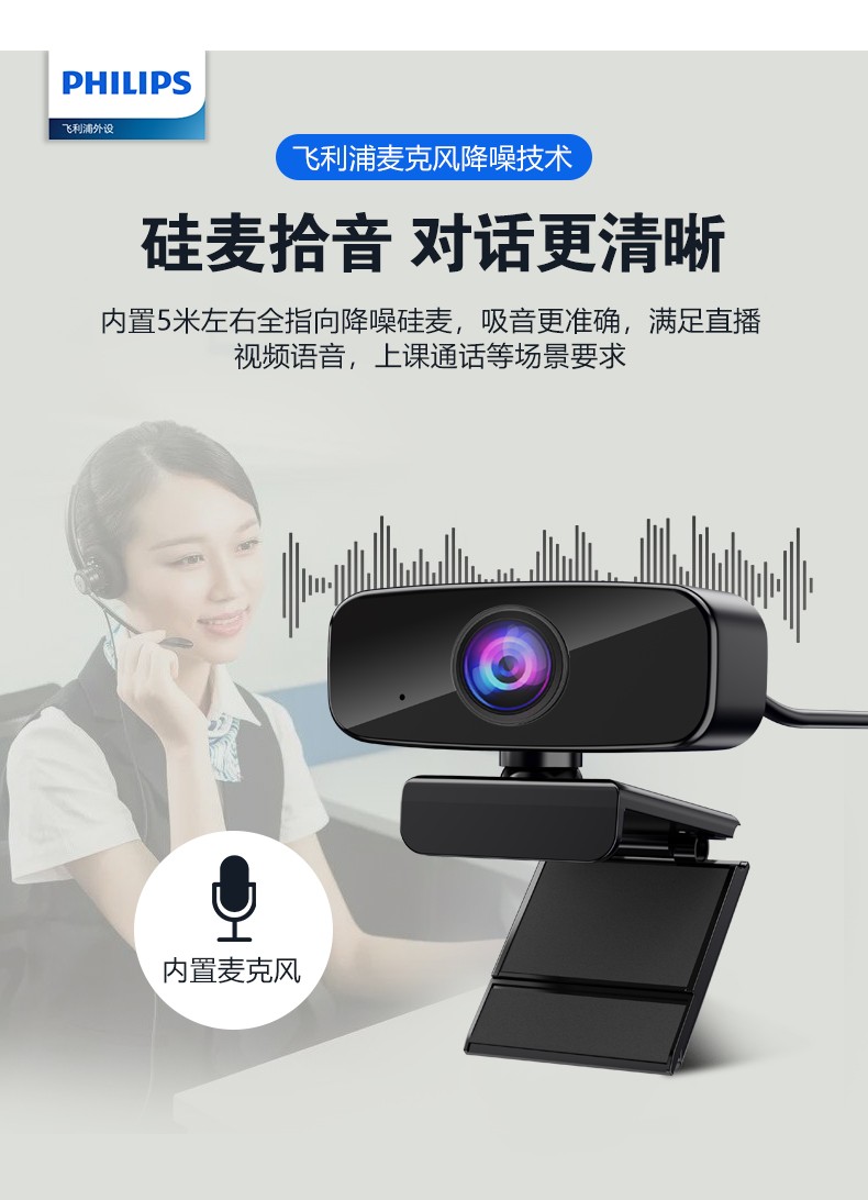 飞利浦HD防犯カメラ带麦克风电脑台式机笔记本USB外置视频网课外部广角主播直播学生考试教学家用录课 1080P双倍超HD【自动定焦+进口硅麦】即插即用【图片 价格 品牌 报价】-