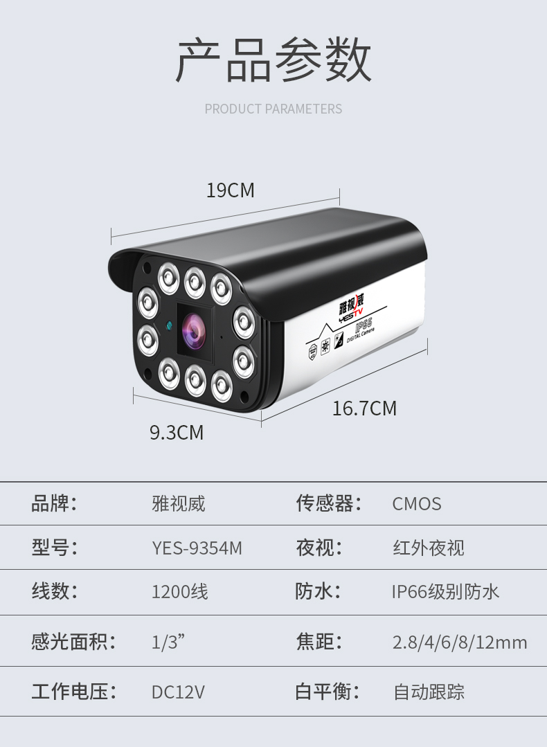 | 商品名称 | Yestv模拟监控防犯摄像机HD室外监视装置丝茨商用家庭用HD防犯摄像机模拟强化赤外线夜视防水录像机模拟HD-9354 M 4 mm |